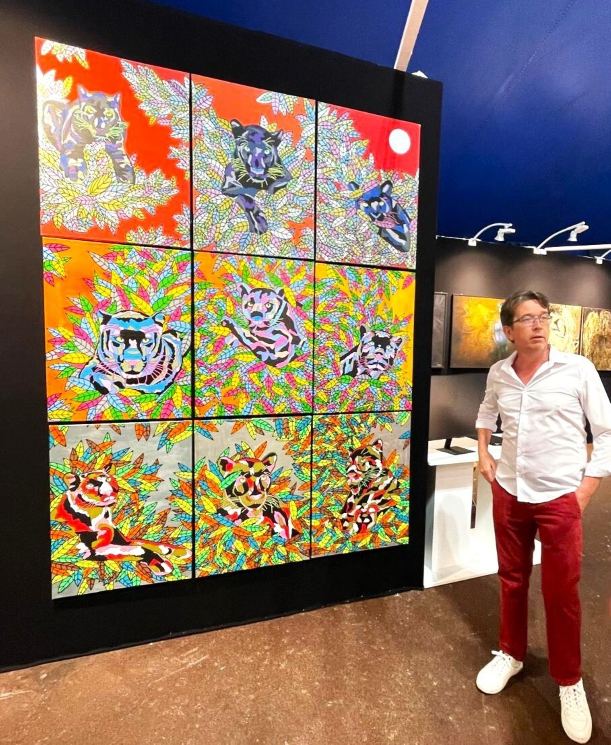 His artistic practice explores existential and political questions facing humanity, particularly the “virus of war.” Through series such as The Coronavirus Series, Lucid Dreaming, Radioactive Beasts, and Humanscapes, he combines symbolic color, geometry, and anthropomorphic imagery to reflect on power, consciousness, and the fragile balance between destruction and renewal. In collaboration with the International Campaign to Abolish Nuclear Weapons, his series Radioactive Beasts was presented in Times Square in 2023.